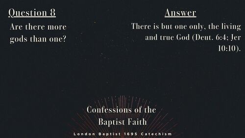 Last time with question 7, we discussed some core characteristics of God. The 1695 London Baptist Catechism gave some great characteristics/attributes of God. This was determined from clear scripture interpretation, but this begs the question, “Are there more gods than one?” Can more than one being fulfill all these necessary characteristics and also be a god? The biblical answer is no. “There is but one only, the living and true God.”